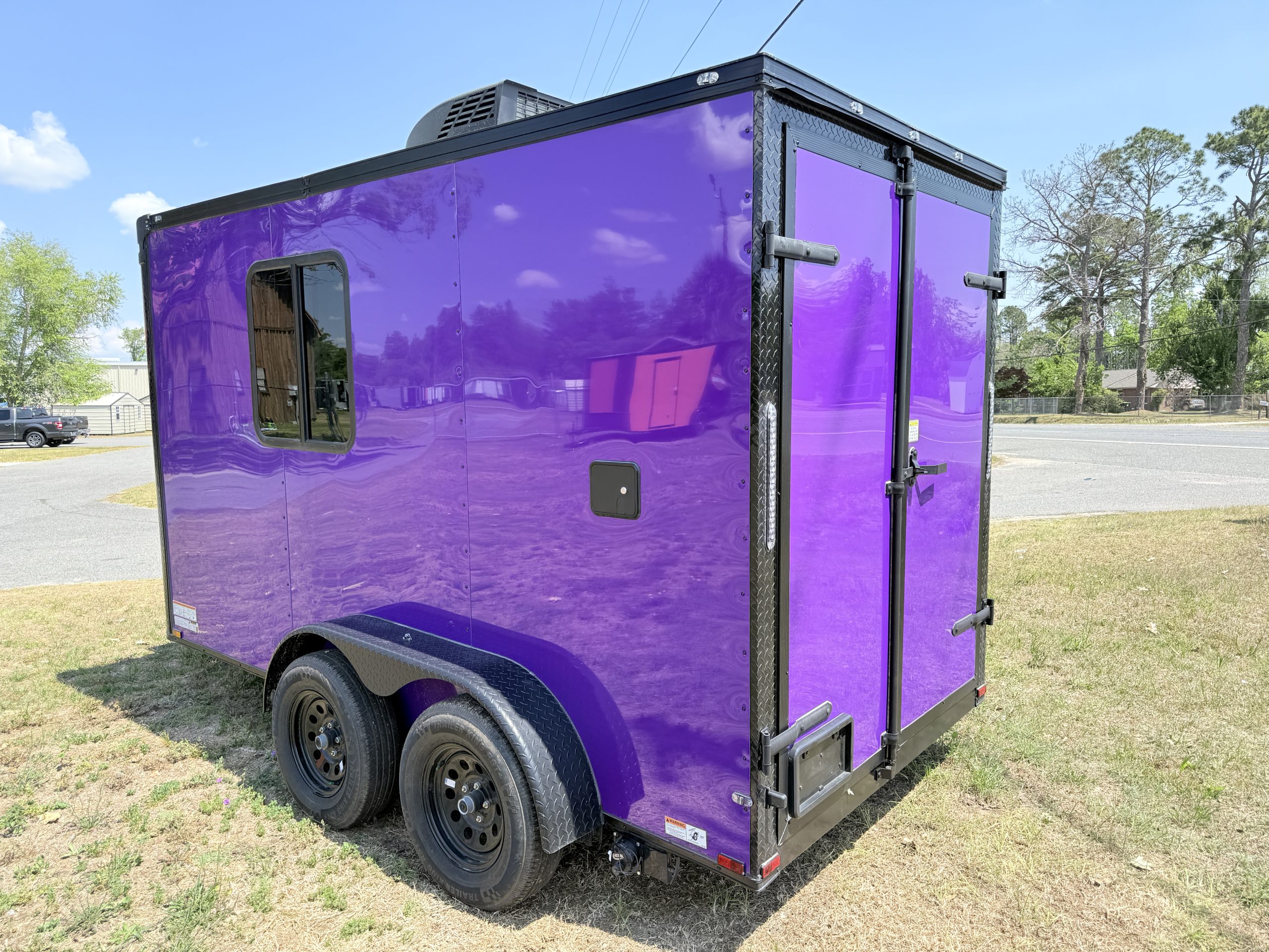 This 6×12 tandem axle pet grooming trailer is compact enough for easy towing yet spacious enough to create an efficient mobile grooming station. The tandem axle design provides improved stability and smoother towing on the road.