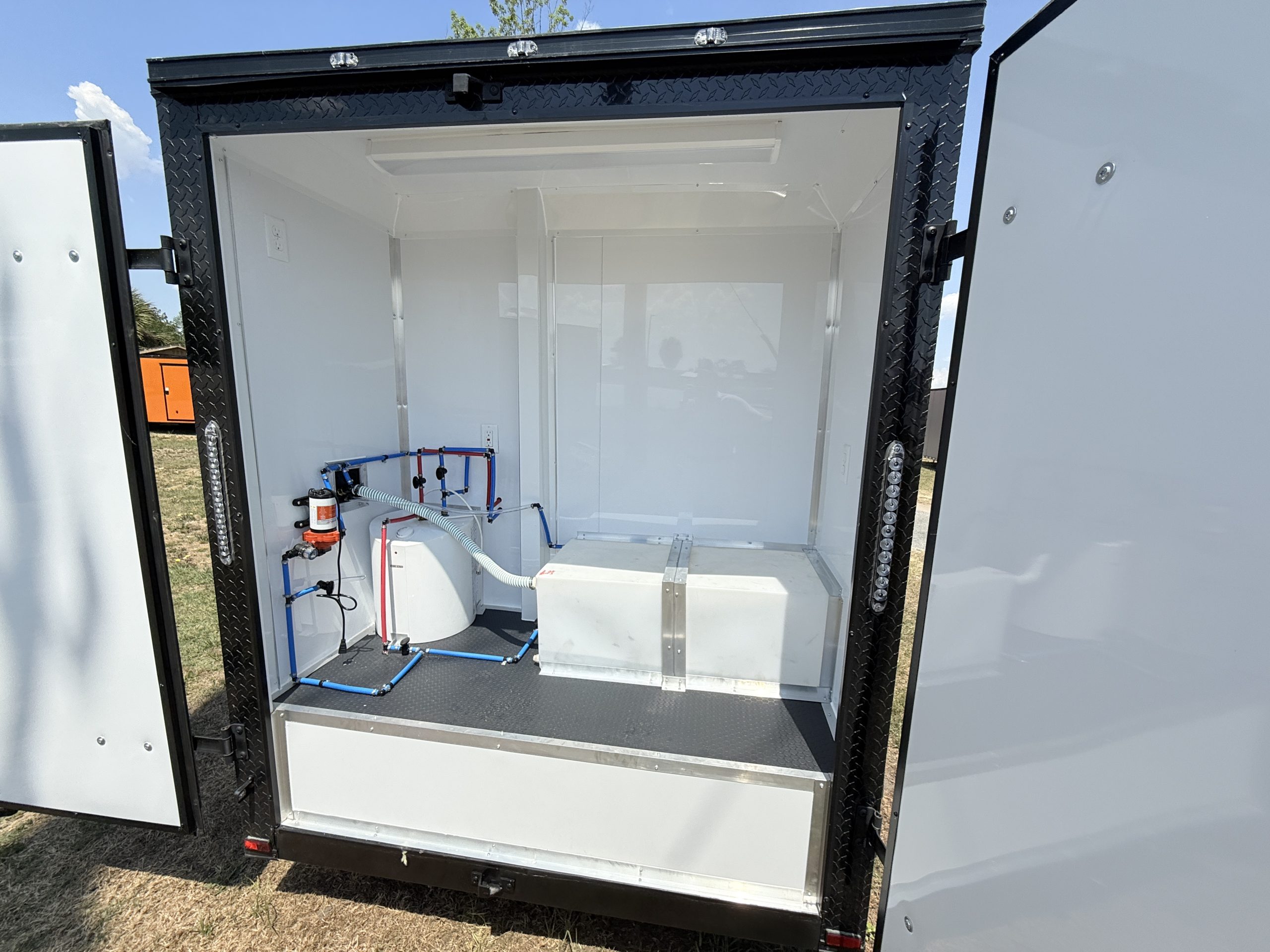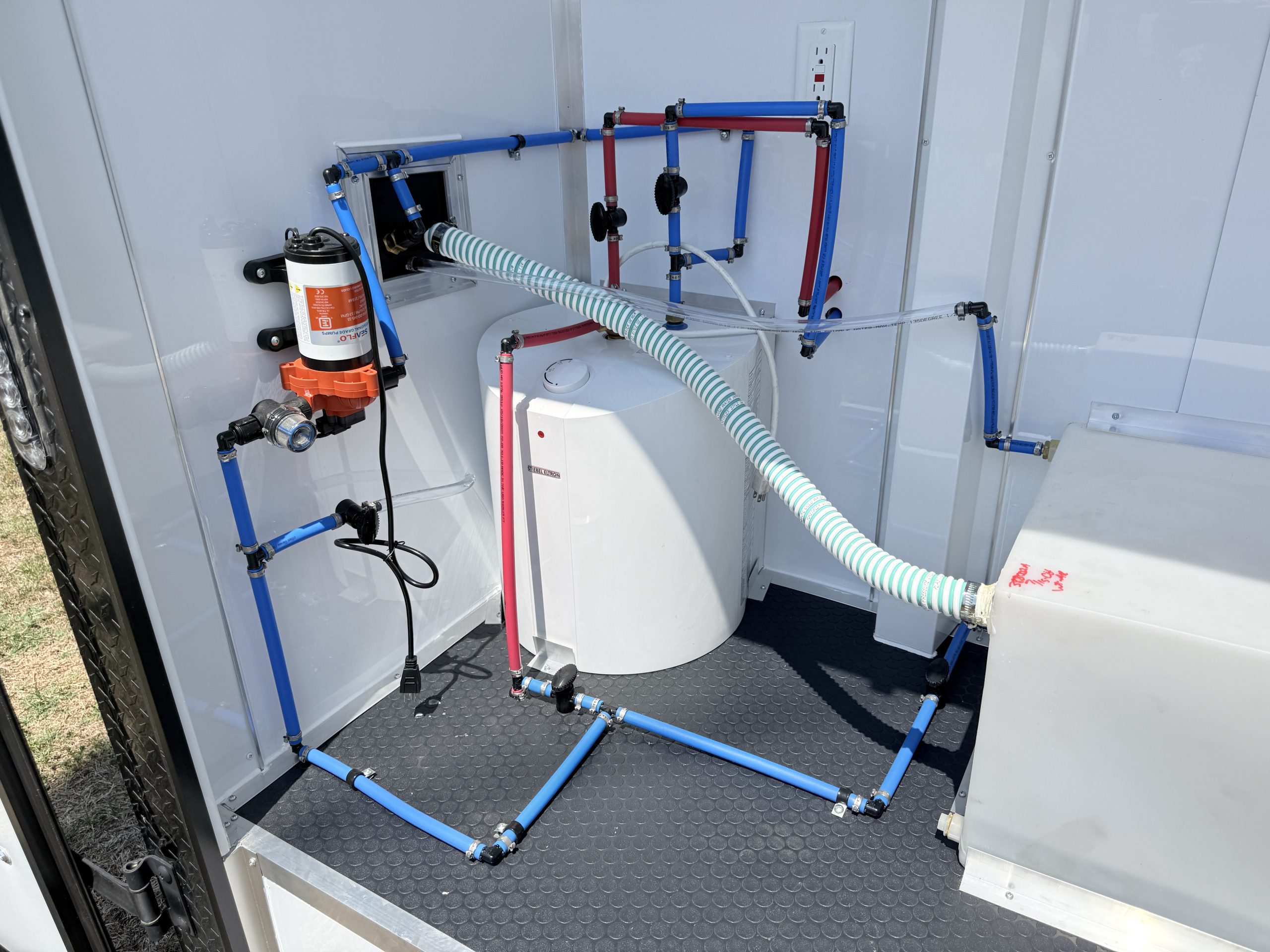 This setup allows you to provide full-service bathing and washing while on the go without needing immediate access to plumbing hookups.